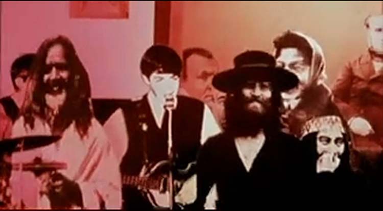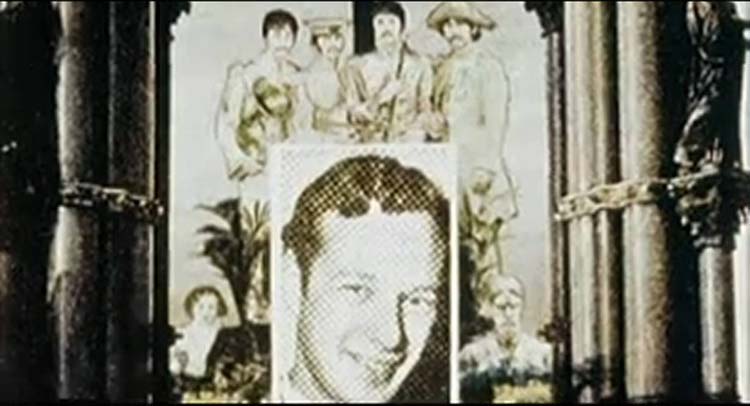 Por ejemplo, ¿por qué hay imágenes de un cementerio? ¿Es alguno en particular? ¿Por qué esa secuencia de John Lennon junto a las pirámides? ¿Qué significa el cartel que pone 66 and a half? ¿Qué simboliza ese edificio del que salen una parte de los personajes del fondo del decorado de Sargent Pepper’s, con Paul McCartney entre ellos?